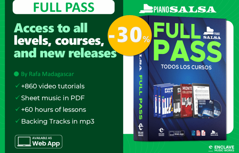 The BASIC LEVEL course is the first in the collection of the trilogy of the 3 levels of the PIANO SALSA method. This course is organized in 4 large blocks of content: THEORY, PRACTICE, MONTUNOS and REPERTOIRE. In each one you will find exclusive material to learn and practice. Almost all the videos come with a downloadable PDF file where you will find scores or summaries of the content of each lesson.