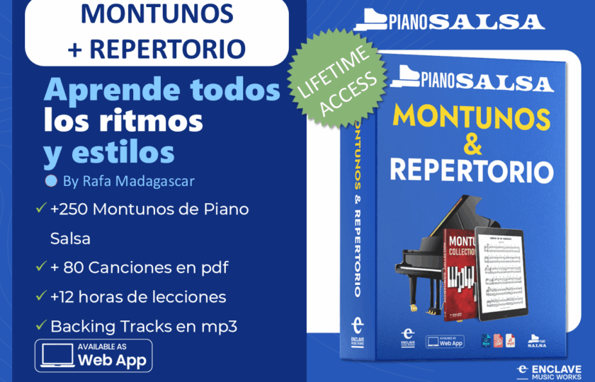 - En el apartado MONTUNOS, encontrarás vídeos con explicaciones didácticas dónde aprenderás construcción de montunos, acompañamientos, y verás además ejemplos con todo tipo de ritmos, pasando por el “Son Tradicional”, “Son Montuno”, “Guajiras”, “Guarachas”, “Descargas”, “Pachangas”, “Timba” y muchos más.