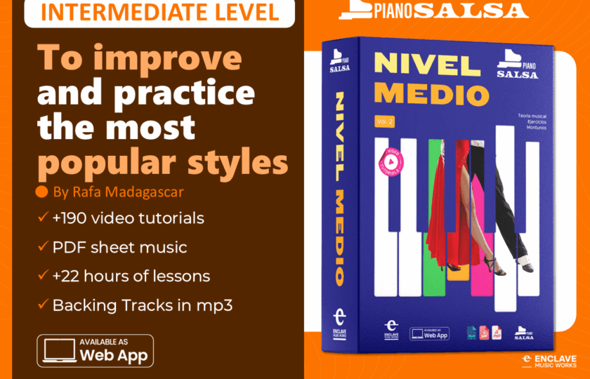 The INTERMEDIATE LEVEL course is the second in the collection of the trilogy of the 3 levels of the PIANO SALSA method. This course is organised in 4 large blocks of content: THEORY, PRACTICE, MONTUNOS and REPERTOIRE. In each one you will find exclusive material to learn and practice. Most of the videos have PDF files with scores or summaries of the content of each lesson.
